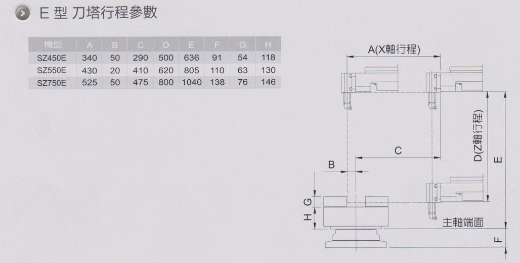 配有C軸動(dong)力刀塔,可作車削(xuē)、鑽孔及攻牙之加(jiā)工。